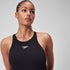 Speedo Classics – tout ce dont vous avez besoin pour une bonne séance de natation. Conçu pour les nageuses aux silhouettes plus grandes, ce superbe maillot de bain noir à dos en V Endurance+ vous permettra d'affronter les longueurs avec style. Le col montant offre une silhouette épurée, tandis que les bretelles croisées en V à l'arrière permettent de nager confortablement, sans restriction. Fabriqué à partir de notre tissu durable Endurance+, il sèche rapidement et résiste au chlore. De plus, le fil polyester de ce tissu est fabriqué à partir de 100 % de déchets post-consommation, tels que des bouteilles en plastique recyclées.