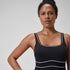 Coupe élégante, flatteuse et confortable sur l'ensemble. Le maillot de bain noir ContourEclipse au look sportif est doté d'une encolure carrée et de coutures blanches sous la poitrine pour attirer le regard vers le haut et mettre votre silhouette en valeur. Des bretelles réglables vous assurent un maintien irréprochable pendant votre entraînement, tandis que le tissu qui épouse les formes du corps et les coutures de soutien flattent le buste, tout en garantissant un maintien d'intensité moyenne. Notre tissu SHAPE COMPREX associe le meilleur de l'innovation en matière de maintien à la dernière technologie de maillots de bain. Résistant au chlore, le LYCRA® XTRA LIFE™ dure deux fois plus longtemps que les tissus standards utilisés pour les maillots de bain, ce qui le rend parfait pour les séances régulières. Le tissu SHAPE COMPREX est également conçu en partie à partir de déchets recyclés. Le fil de nylon présent dans le tissu SHAPE COMPREX est fabriqué à 100 % à partir de déchets pré-consommation, tels que des déchets issus d'usines.