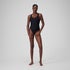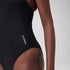 Offrez-vous une tenue de pro pendant vos séances d'entraînement avec notre maillot de bain athlétique à encolure dégagée noir. Arborant une coupe ajustée et un élégant empiècement en maille filet au dos, il est doté de bretelles de soutien pour une meilleure mobilité. Le soutien-gorge à balconnets avec bonnets amovibles offre un soutien au niveau de la poitrine pour vous permettre de vous concentrer sur votre technique de natation. Notre nouveau tissu ultra résistant au chlore vous accompagnera à travers toutes vos séances d'entraînement régulières. Il est doté de la technologie XLANCE® avec élasticité bidirectionnelle, pour un ajustement performant et durable. Fabriqué en partie à partir de bouteilles en plastique recyclées – le fil en polyester Repreve® du tissu est fabriqué à 100 % à partir de déchets post-consommation.